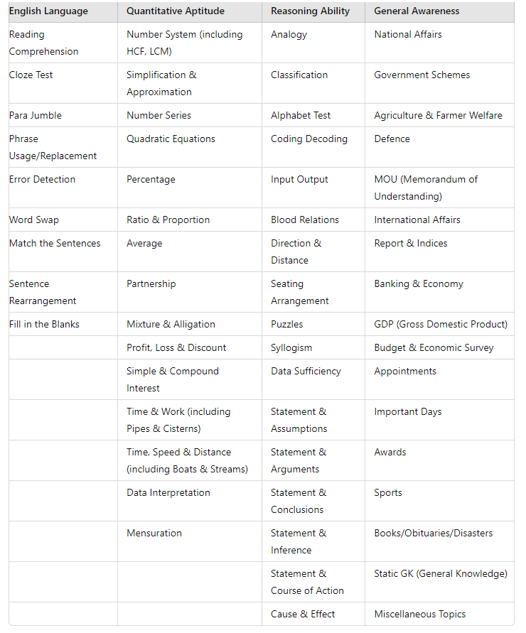 Let us start by discussing the exam pattern of the RBI Grade B exam with the division of each phase. Prelims also called Phase 1 has 4 subjects mentioned below: